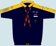 The Cub Scout Uniform consists of the dark blue shirt with the section colour, which is Yellow, across the sleeve, yoke and collar. The other components of the uniform are a blue or moss-green belt and a scarf and woggle.
